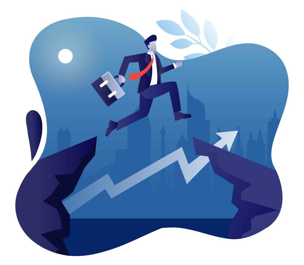 Illustration showing a website that provides information about risk management and in itself, contains the image of a man jumping precariously over an unprotected space. This illustration is providing the opportunity to use this website template for the purpose of a business that deals with risk management. It may be downloaded and used by a designer to show a possible design for a website that could be built for their client.